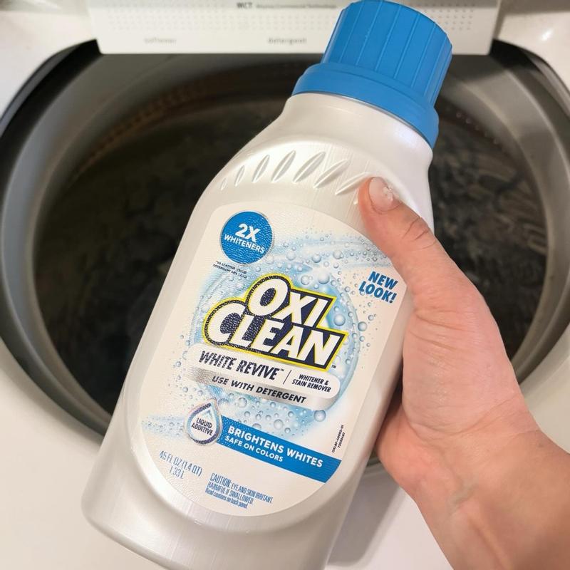 To remove tough stains and revive dingy whites. Mix 1 capful of OxiClean per gallon of the warmest water recommended by the garment care label. Submerge tough stains, heavily soiled clothing, or dingy whites in solution and soak for 6 hours, then wash as normal.