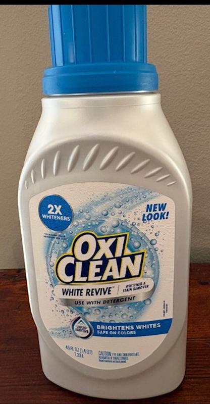 Blanquea la ropa blanca 40% mejor que el cloro sin el olor fuerte del cloro y además es confiable en la ropa de color. Ahora puedes mantener y revivir tu ropa blanca percudida – dejándola como nueva por más tiempo con el OxiClean™ White Revive™ Liquid.